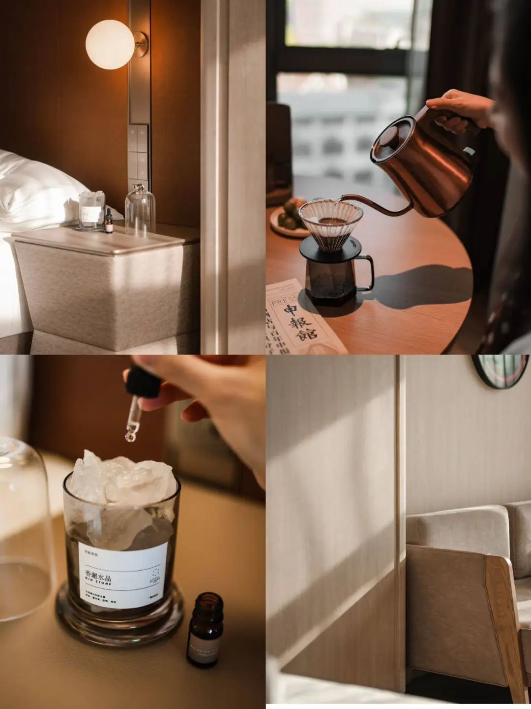 在这里,出差的商务客不必困于喧闹与压力,可以安静享受晨间的一杯手冲,或傍晚的一口威士忌,在摩登精致的氛围中,找回属于自己的节奏。而对于休闲游客,它不刻意迎合某种性别审美,更像一张温暖的大地色绒毯,默默包裹每一份疲惫。
