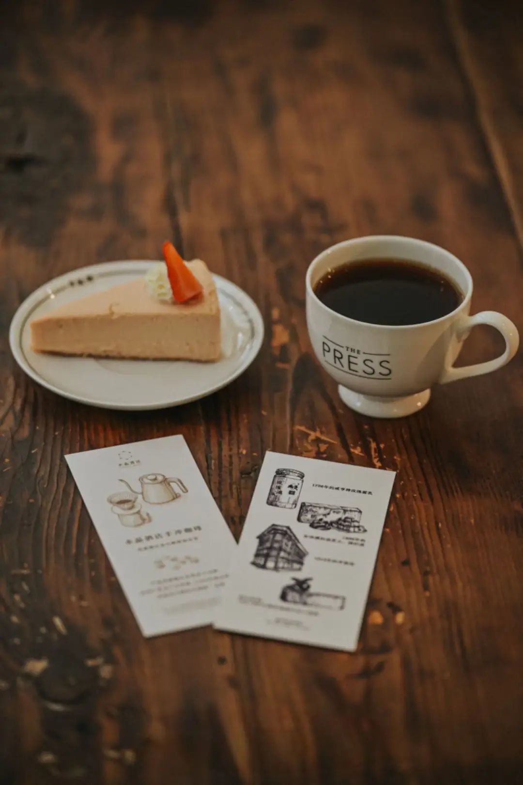 THE PRESS是由复旦校友会筹建的文化咖啡品牌,他们坐落于申报馆的旧址,用新文化人的创新,让玫瑰腐乳芝士蛋糕登上了魔都最摩登的餐桌。一口咸甜交织的蛋糕,一口水晶的耶加雪菲,如果在30年代,也是知识分子们追捧的“稀罕货”。