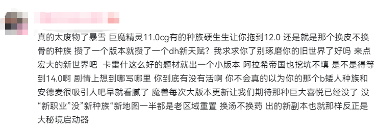 所谓的新地图、新种族、新玩法、新专精,大多只是旧体系的延展与修修补补,而真正能让人眼前一亮、拍案叫绝的创新设计,几乎难觅踪影。