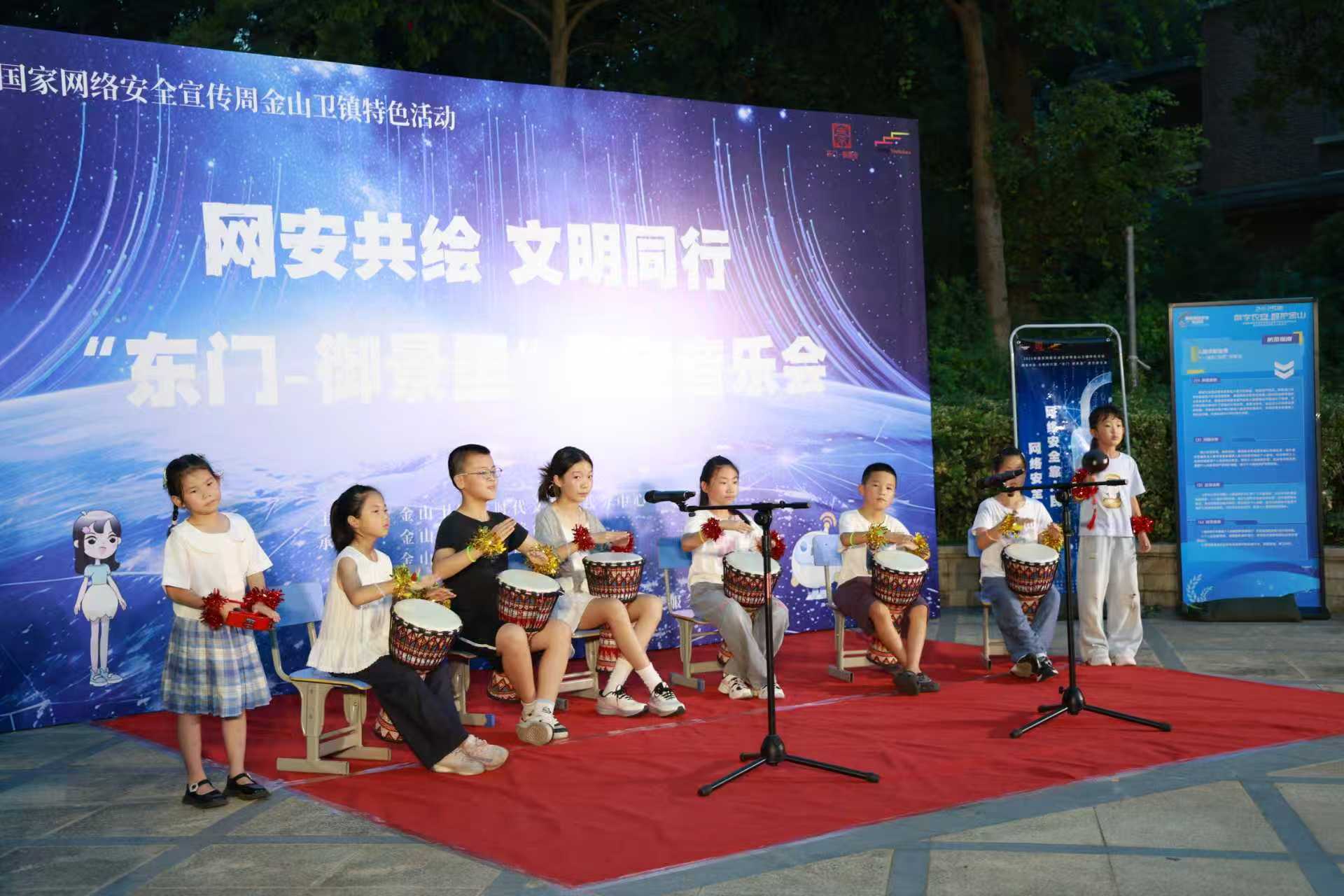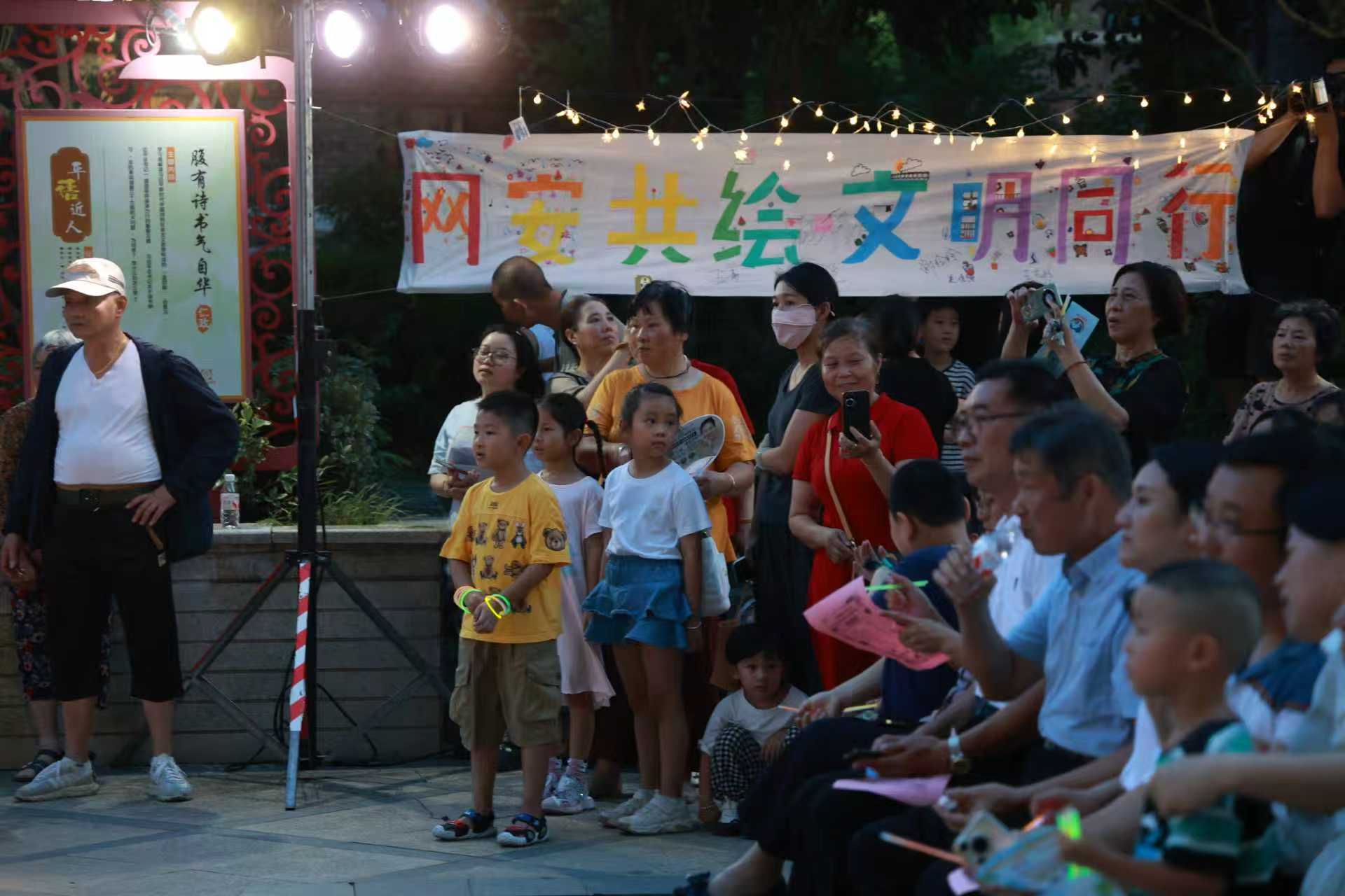 8月22日晚,在金山区金山卫镇御景龙庭小区户外下沉广场,伴随着欢快的音乐、优美的舞蹈,一场以“网安共绘,文明同行”为主题的“星空音乐会”在居民们的欢呼声中正式上演。