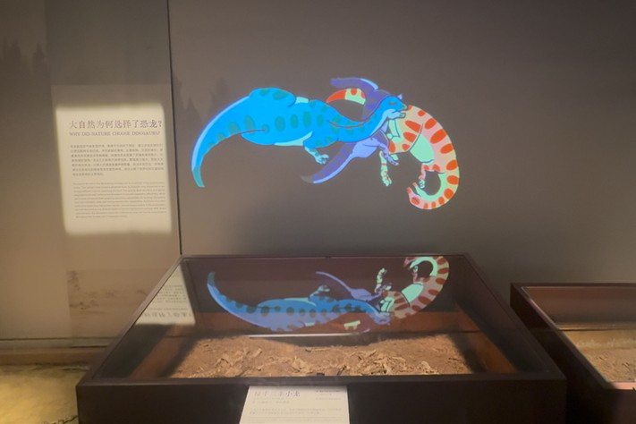 有多次打卡恐龙展的观众发现,展览经常加入新细节,就像不断更新的“彩蛋”。如“禄丰三条小龙”化石前的墙壁上近日投影了根据化石骨架复原的恐龙动画,让观众能在化石与复原图之间形成直观对照,记忆和理解更加深刻。记者注意到,如今不少恐龙化石面前都配有动画演示,化石背后的故事更加丰满了,观众的体验感也提升了。展厅内还设置了“恐龙喂食”VR互动区,让观众在沉浸式体验中了解恐龙的生活习性,不仅增强了展览的趣味性和互动性,也拓展了科普教育的传播方式。