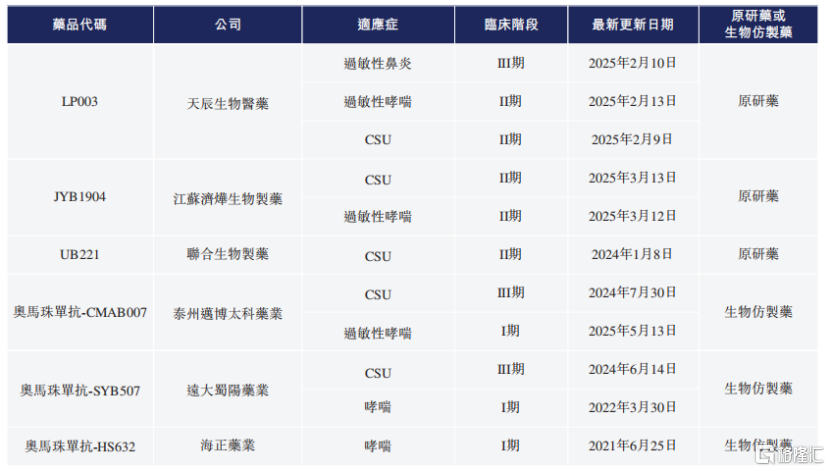 对于慢性自发性荨麻疹,公司正在中国开展与奥马珠单抗进行头对头比较的II期临床试验。预计于2026年上半年完成II期临床试验并启动III期临床试验。此外,公司正在开展过敏性哮喘的II期临床试验,并预计于2026年启动其他过敏性疾病的II期临床试验。