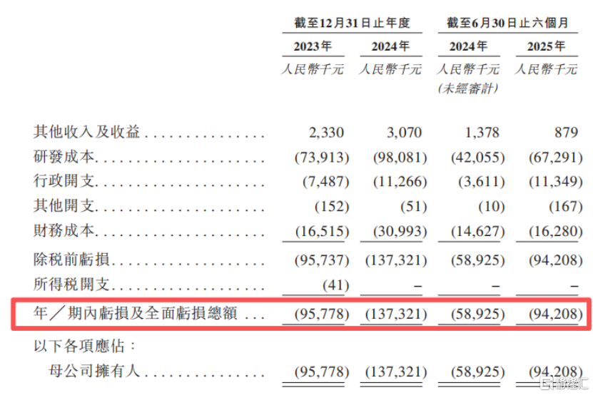 2023年、2024、2025年1-6月(报告期),公司的净利润分别为-9580万元、-1.37亿元、-9420万元,两年半亏损3.27亿元。