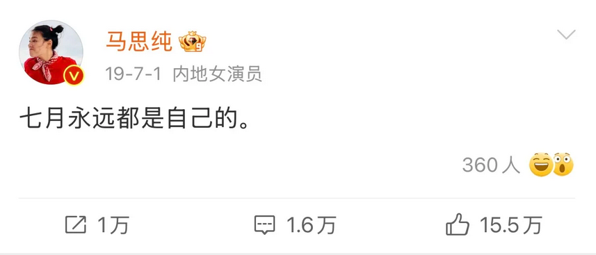 2018年8月,马思纯发了一条微博:“皮囊的相爱永远无法与灵魂的相爱相提并论。”