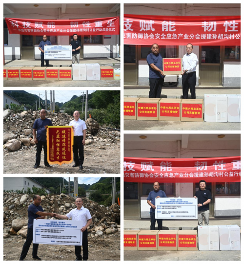 近日,由中国中国灾害防御协会安全应急产业分会联合多家科技型会员企业展开以“科技赋能,韧性重生”为主题的公益援建活动在孙胡沟村村委会大院启幕。
