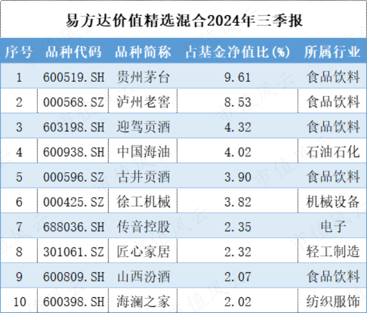 因此包正钰在接手之后调整了重仓股,直至2024年三季报还保持着前十大重仓股中有5只为白酒股的持仓的态势。