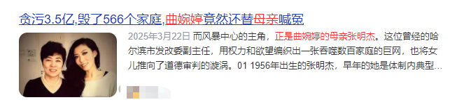 就像当年的“曲婉婷事件”,她的母亲贪污受贿、侵占职工安置费,获利3.5亿。