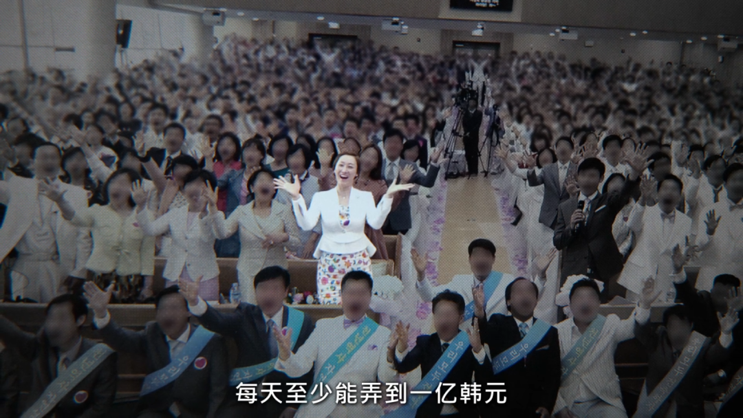 纪录片中本来有一些女教徒服侍郑明析的视频,制作人在隐私部位打了码。