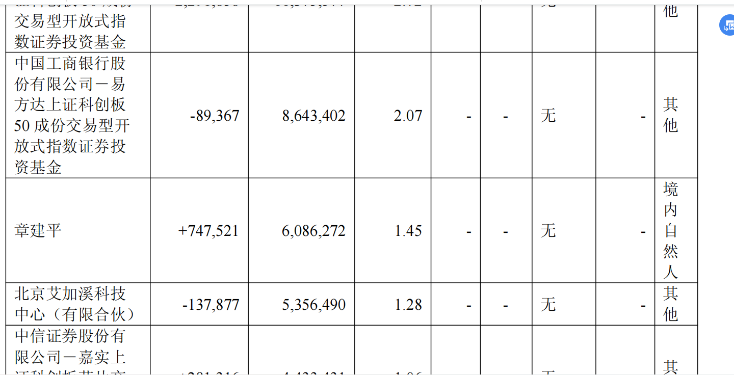 去年末,章建平就已新进公司前十大股东,持股数533.88万股,期末参考市值为35.13亿元;今年第一季度,章建平进一步加仓至608.63万股,期末参考市值为37.92亿元。今年半年报显示,章建平半年加仓超74万股。