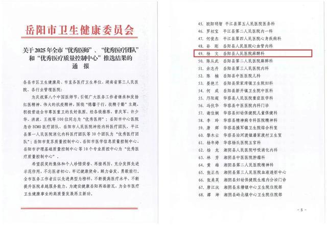 作为岳阳县人民医院麻醉科主任的杨文副主任医师,他凭借高超的临床技艺、严谨的工作态度,创新进取的精神,被评为2025年全市“优秀医师”。