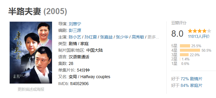 婚后刘惠宁更是全力支持妻子的事业,专门为她量身打造了《半路夫妻》,这部剧直接把陈小艺的事业推上又一个高峰。