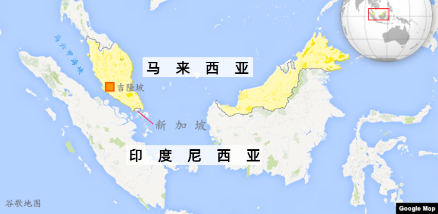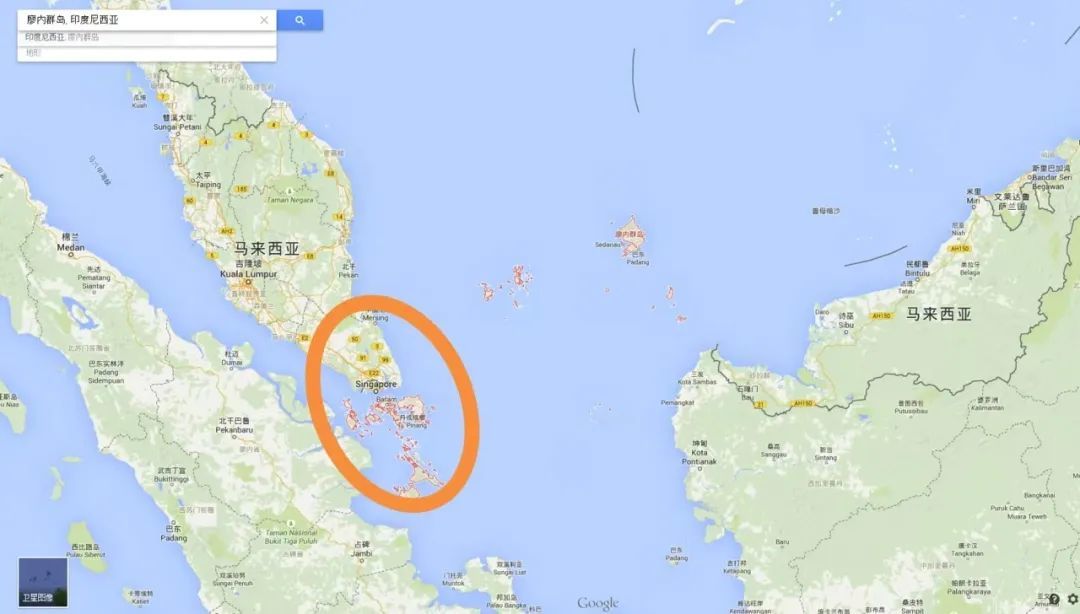 ▲廖内群岛-柔佛地理位置(橘色圈内)