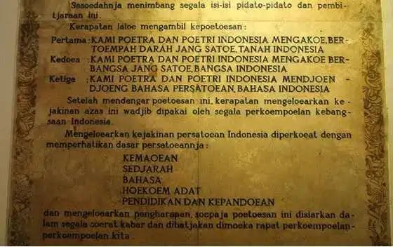 1928年10月28日,第二届印尼青年代表大会通过了著名的“青年誓言”(一个祖国、一个民族、一种语言),正式把马来语确定为印尼全民族的共同语。