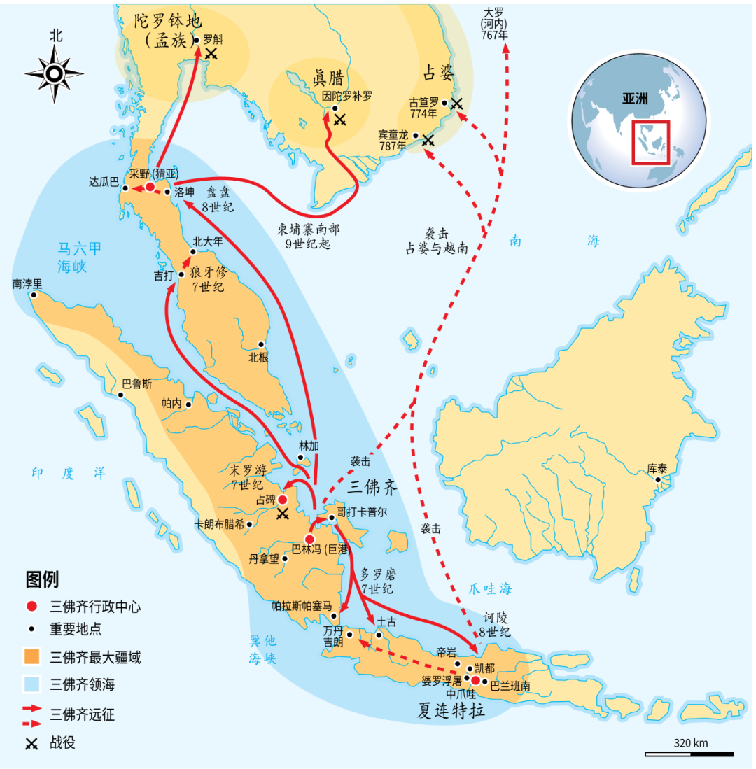 公元7世纪,以苏门答腊东南部巨港为中心的三佛齐王国崛起。三佛齐控制着东西方贸易要道,在马来群岛这个多语种、多族群的复杂贸易环境中,古马来语作为王国的官方语言,承担起区域通用语的角色,奠定了其日后广泛传播的基础。