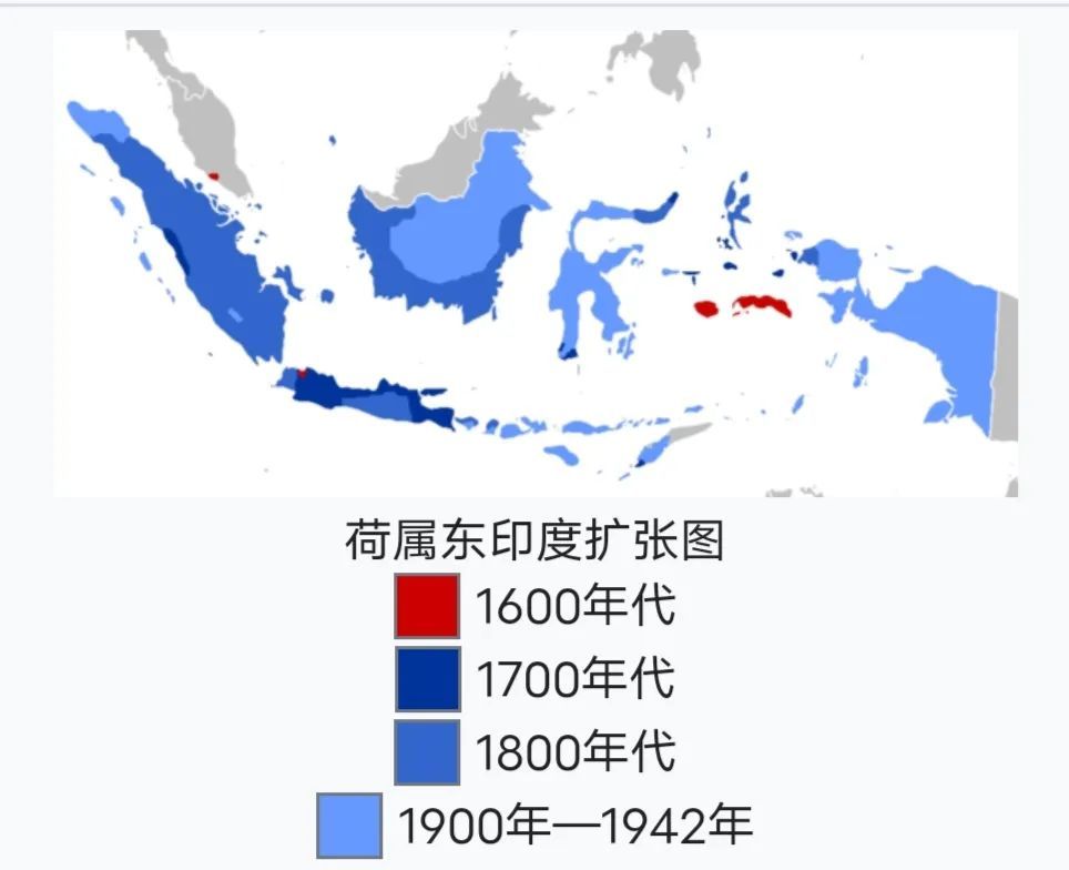 1602年,荷兰率先在人口众多的爪哇岛建立贸易商站,荷兰以巴达维亚(今雅加达)为核心,通过外交、战争蚕食周边国家领土建立了荷属东印度殖民地,即印度尼西亚的前身。