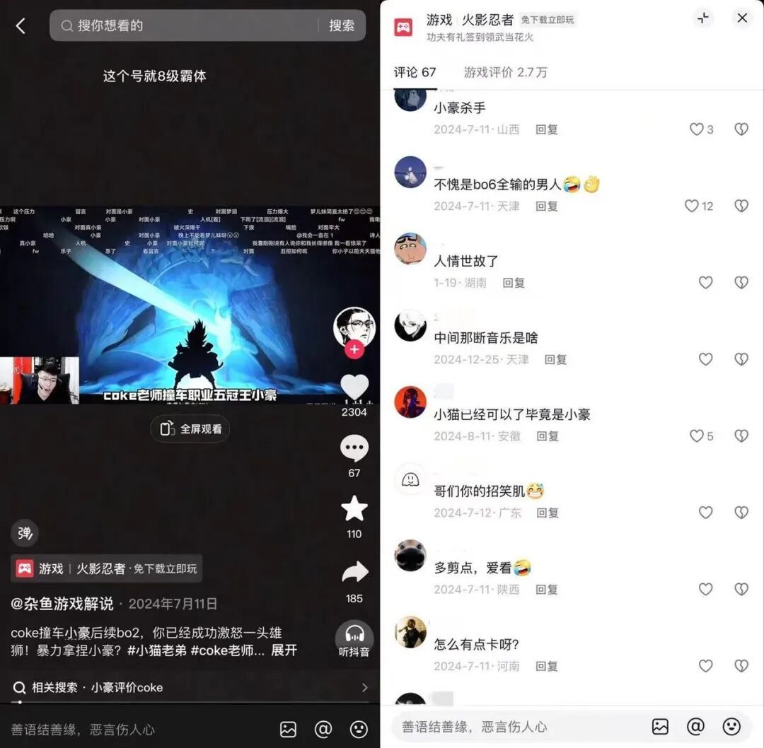 他们对动漫、游戏、二次元文化等有着浓厚的兴趣,不仅喜欢观看火影忍者的动画、漫画,还热衷于参与相关的手游竞技活动,这为@coke老师 提供了天然的跨圈、破壁观众基础。