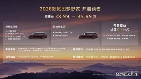 8月29日,第二十八届成都国际汽车展览会盛大开幕。全面焕新升级的“新时代旗舰MPV”2026款岚图梦想家预售亮相。本次新车共推出智能超混版和智能纯电版两个动力版本,预售价为38.99万-45.99万,同步推出了价值超万元的多项重磅权益,包括2000元抵5000元尾款的膨胀金,终身免费三电质保、终身免费基础保养和优先交付提车。9月1日起,2026款岚图梦想家展车、试驾车将陆续到店,消费者可以进店亲自体验新车的独特魅力。