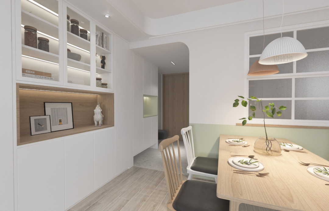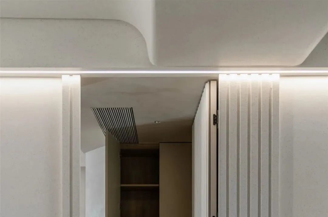 墙面的阴角与阳角位置,也是可以加入圆弧处理的设计,让墙面角落线条更加圆滑优雅,使得空间感更加温馨情趣而高级。