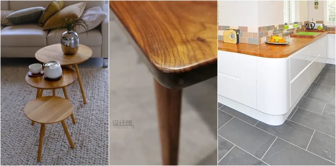 家里的实木家具、提议家具,建议也把边角做成圆弧造型的设计,圆角的家具会让人更加有安全感,并且外观也会更加优雅精致,显得有档次。