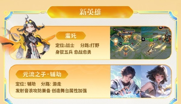 首先是新英雄蚩奼,职业是战士,推荐分路打野/对抗。蚩奼来自归山一族的“五兵”衣钵传人,做事总是直来直往,火爆脾气远近闻名。体格并不高大的她,却是年轻一代的最强者,以锻造世间最强之器为目标而努力着,被族人们称为“小器痴”。殳、矛、戈、戟、弓五兵能量核心在她手上被再次铸造,成为可变换多种形态的神兵。五兵合一,即是莫大威能激发之时,这也代表着蚩奼在游戏中能够玩转五种兵器,如果熟练掌握的话会非常酷。