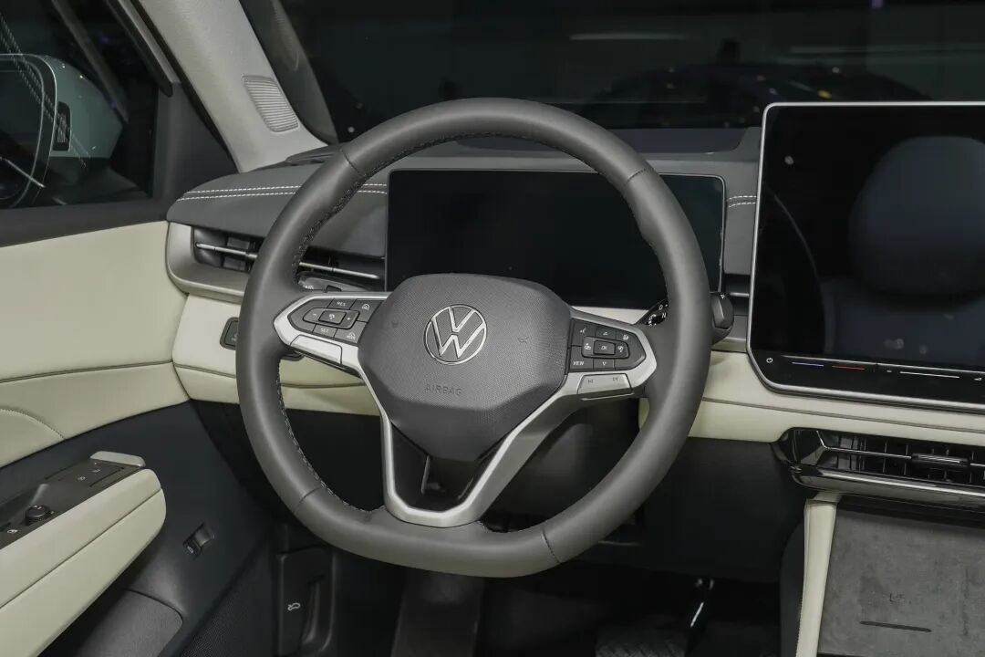 内饰方面,新车整体设计依旧是熟悉的大众风格,中控台配备10.25英寸全液晶数字仪表、15英寸触控悬浮屏以及W-HUD抬头显示系统,中控屏幕下侧保留有物理按键。同时,新车采用三辐式方向盘,取消中间的换挡结构换为怀挡的设计,释放了更多的空间,空调出风口呈现出贯穿式风格。