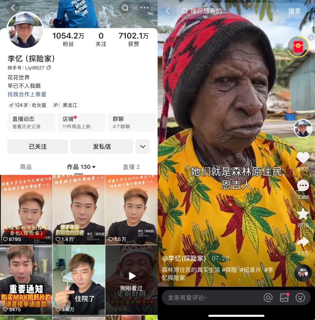 探险创作者@李忆(探险家) 深入非洲原始部落,真实记录当地的风俗生活,话题“中国博主开始带原始人爆改部落了”也在今年6月火爆全网,引发不少网友好奇围观。