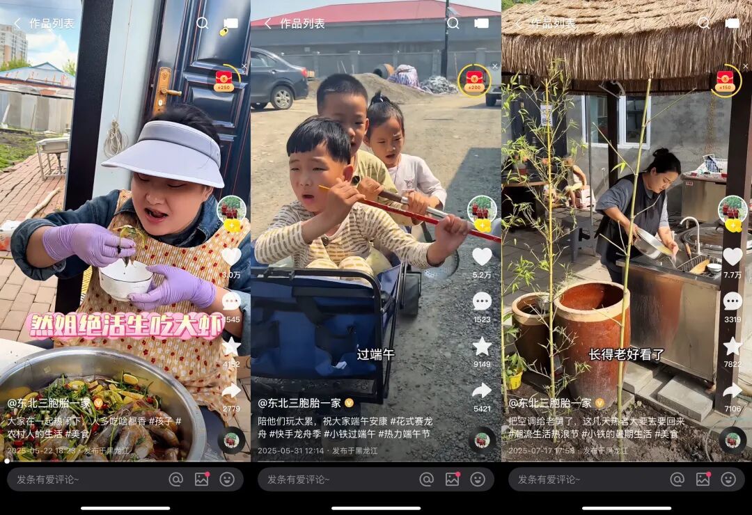 @东北三胞胎一家 就是靠这套逻辑实现“流量变现双丰收”,他们在公域发布的生活记录,从充满东北元素的灶台日常到三胞胎兄妹相处趣事,真实的烟火气让单条视频平均曝光量超500万,快速积累百万粉丝。在快手官方的鼓励和支持下进入私域后,他们凭借日常积累的粉丝信任基础,单场销售额轻松突破1000万。