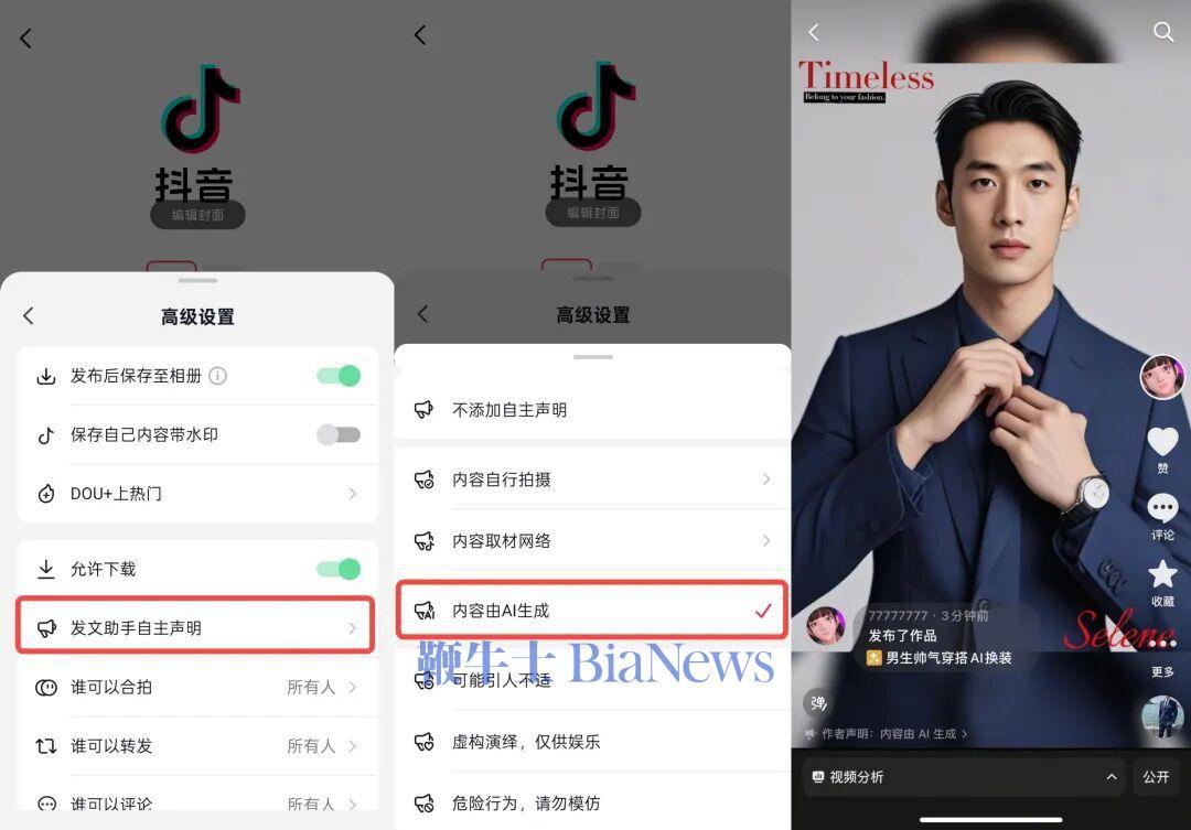 9月1日,抖音发布《抖音关于升级AI内容标识功能的公告》。