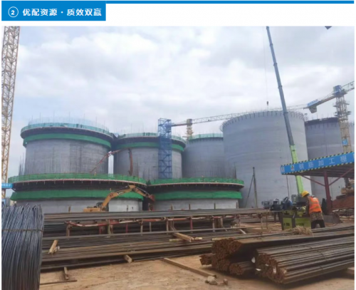 筒仓施工涉及高大模板、滑模;仓顶支撑体系等一系列工艺,项目团队充分优化施工组织和工艺流程,通过合理穿插流水施工有效提升施工效率,施工过程中无死角监控施工作业;动态实施管控、全方位保障现场施工质量。