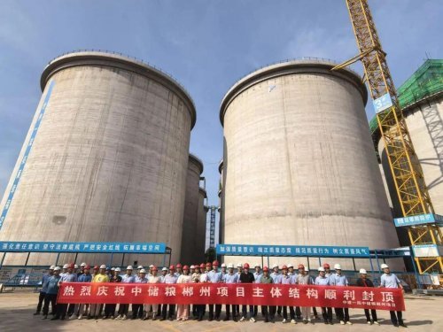 8月10日,由中建一局承建的中央储备粮郴州直属库有限公司粮食仓储物流项目主体结构全面封顶项目;建设取得阶段性重要成果,