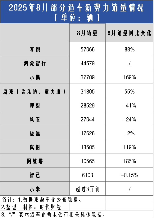9月1日,造车新势力品牌陆续公布8月销量“成绩单”。