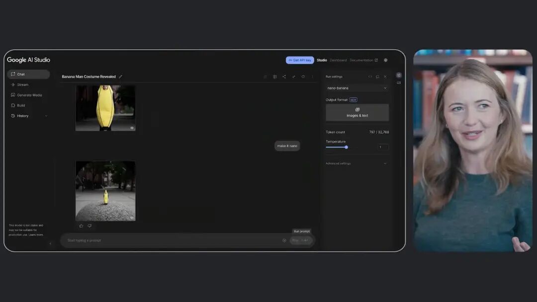 Nicole:我们最初在测试时给它起了代号叫 Nano Banana,后来大家猜测这是我们的新模型更新。然后你看,现在它会把你变成一个可爱的迷你版角色,穿着香蕉服。