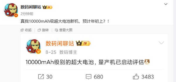 【CNMO科技消息】9月2日,数码闲聊站再曝重磅消息:搭载10000mAh级超大电池的智能手机已进入发布倒计时,预计将于2026年初正式亮相。届时,智能手机将正式迈向“五位数电池时代”,续航焦虑或将成为历史。
