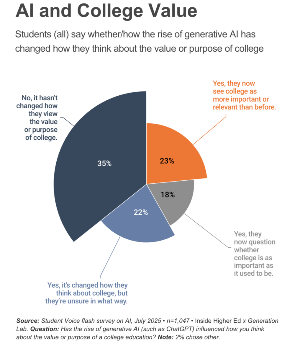 另有约四分之一学生承认AI改变了个人对大学价值的认知,但尚未形成明确判断。