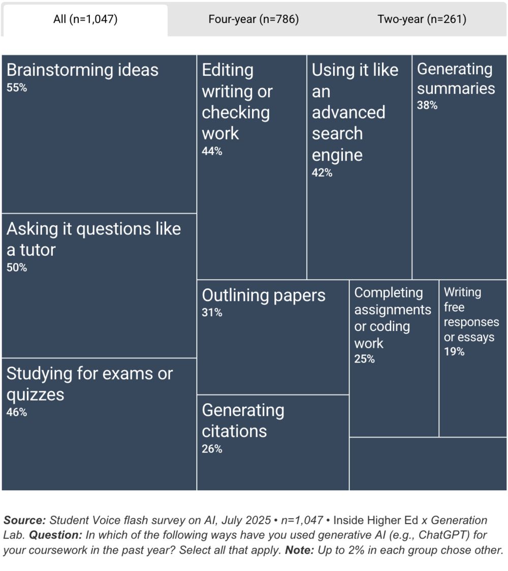 参考资料:https://www.insidehighered.com/news/students/academics/2025/08/29/survey-college-students-views-ai
