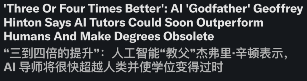 “AI教父”Hinton认为AI的教育水平不久超越人类教师,学位即将过时。