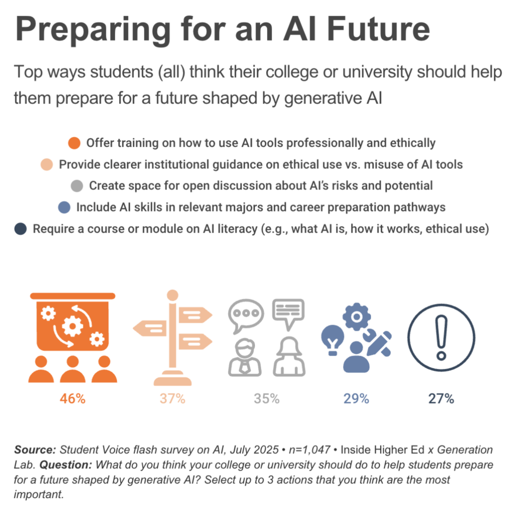 已步入职场的成年学生对此需求尤为迫切:57%希望学校提供AI工具的专业和伦理使用培训。