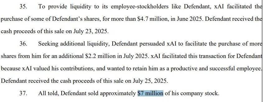 因为岗位关键,xAI给予了Li极大的信任。他不仅被授予了访问公司整个技术栈组件的权限,还能访问部分机密文件和专用信息。作为对核心人才的认可,xAI还为Li提供了期权和股份。今年6月和7月,xAI协助Li出售了他持有的公司股份,累计套现近700万美元。
