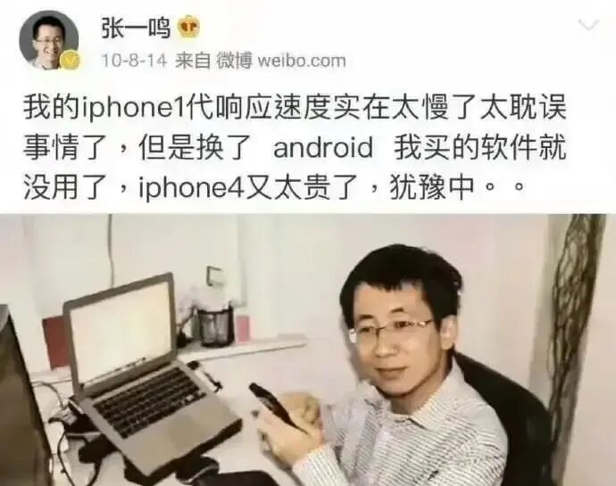 他的iPhone 1代响应速度实在太慢了,耽误事情了。他想换安卓,但换了买的软件就没用了,iPhone 4又太贵了。iPhone 4当时要6千。