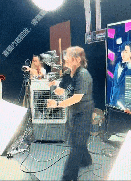 运镜师拿着摄像机推拉摇移的第三视角与背后大屏幕里实时播放的团播画面形成鲜明对比,这种前所未有的幕后视角直播,让网友看得上头。