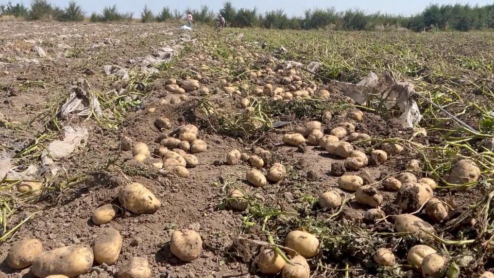 近日,新疆塔城地区沙湾市博尔通古乡数千亩马铃薯迎来收获季,农民在田间忙着收获马铃薯。近年来,当地不断拓宽马铃薯销售渠道,产品不仅在新疆市场受欢迎,还远销海外。