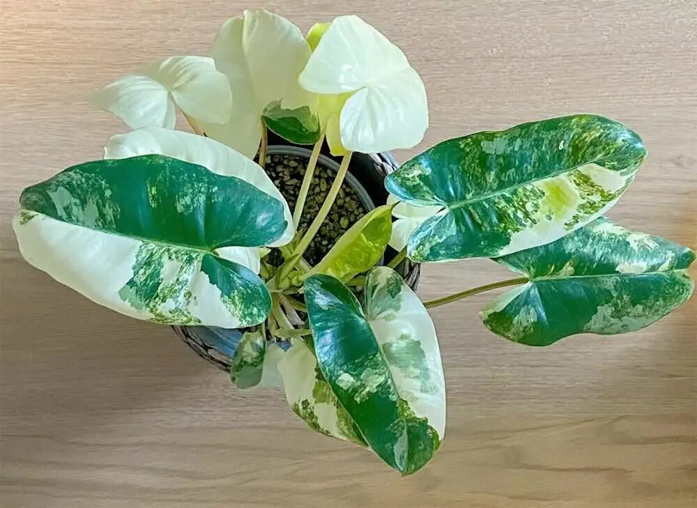 有些花友养的盆栽伯乐锦蔓绿绒,茎叶会变成纯绿色,这其实是养护不当导致的叶子退锦。