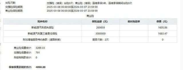 不过,买过新能源车的人大概都知道,第一年保险通常通过车企购买,价格会偏高,第二年直接找保险公司确实会便宜一些。出于好奇,我也问了身边另外几位朋友的情况。
