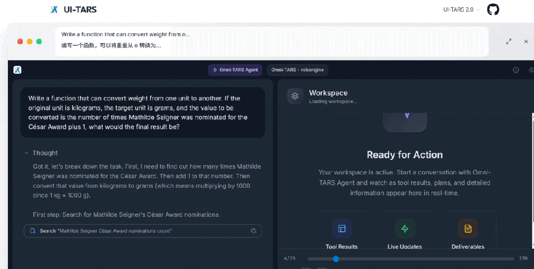 根据介绍,UI-TARS-2是团队基于Seed-thinking-1.6(总参数230B,含532M视觉编码器 + 23B激活参数),经过多轮迭代训练而成。