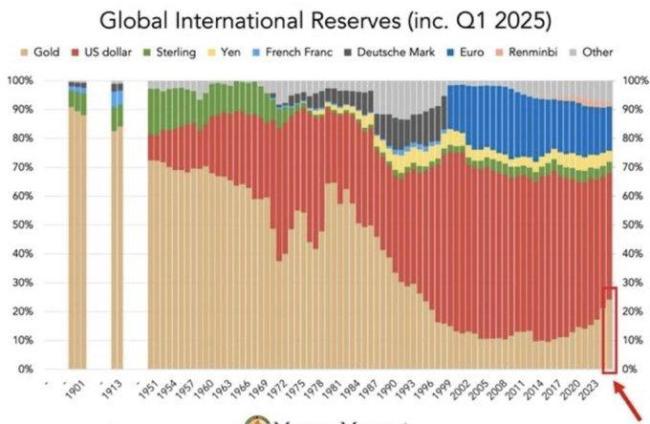 马克思在《资本论》中揭示了货币与黄金的本质关系——“黄金天然不是货币,但货币天然是黄金”。近年来,随着黄金在央行储备中的价值先后超越欧元和美债,黄金的“再货币化”进程正在加速。黄金再货币化是指恢复黄金作为储备资产和支付手段的金融属性,而非单纯恢复金本位制。