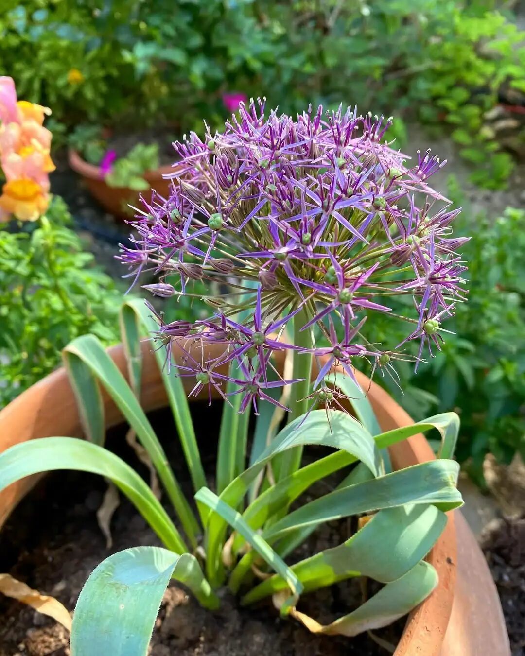 大花葱的优点也非常多,首先它的花球特别大、花色鲜艳,而且耐寒性强,在北方可露天过冬;其次它的病虫害极少,养护时最需要注意避免土壤积水,整体可粗放管理,只要能安全度夏,就能保持多年生特性。