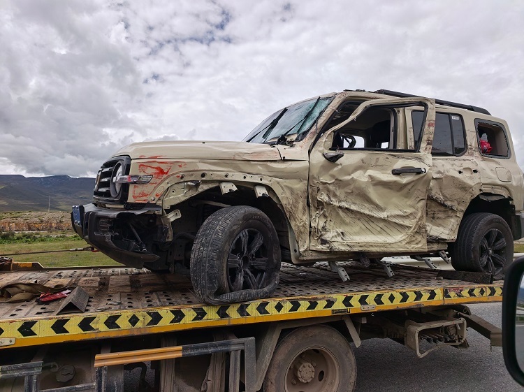 撞击发生时,坦克300被撞出国道,翻了好几个圈,而重卡驾驶舱也发生严重变形,甚至直接被撞掉一部分前脸。