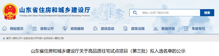 山东省住房和城乡建设厅关于高品质住宅试点项目(第三批)拟入选名单的公示