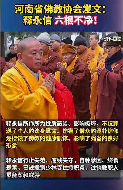 释永信前两天又上热搜了,这一次是河南省佛协发了一份通报。