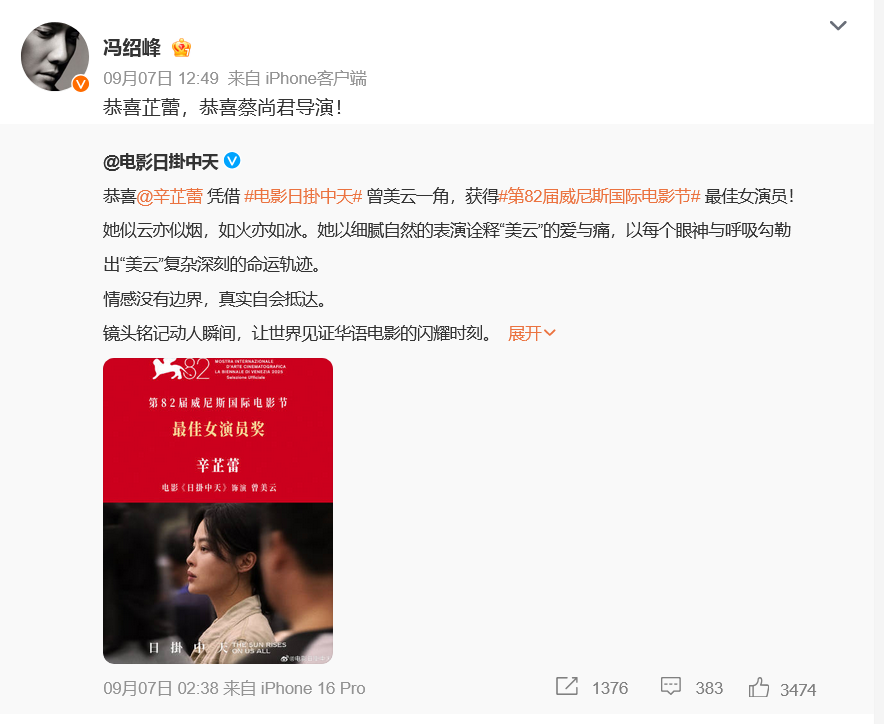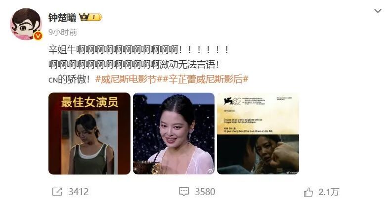 / 众星祝贺辛芷蕾获威尼斯“影后” /